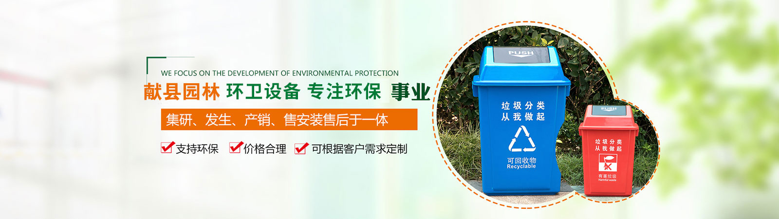 產(chǎn)品有:果皮箱、垃圾箱、花盆、護花欄、路椅、大型袋裝垃圾箱、保潔專用三輪車及環(huán)藝雕塑、健身器材及物業(yè)小區(qū)配套設施等。